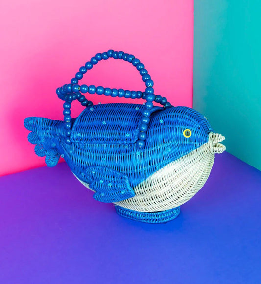 Wicker Darling Puffer Fish Bag